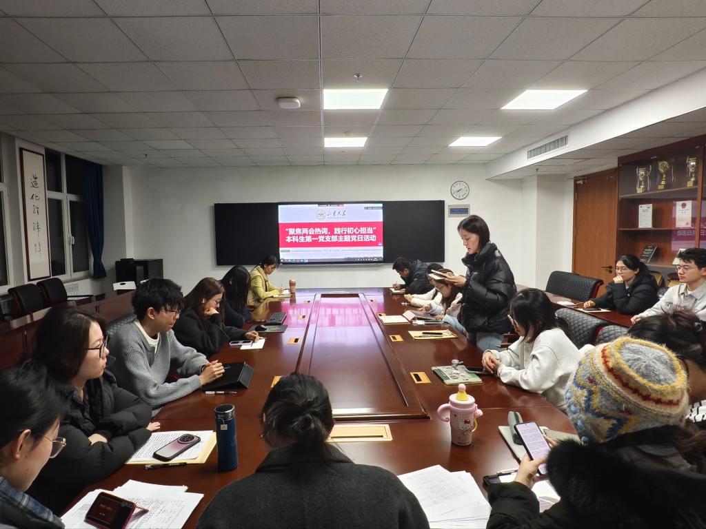本站讯 为深入学习贯彻2026年全国两会精神,引导广大党员准确把握国家发展新阶段的战略部署,3月16日晚,世俱杯买球官网网站本科生第一党支部在北衡楼1421会议室开展“聚焦两会热词,践行初心担当”主题党日活动。本次活动由党支部书记王祎璠主持,本科生第一党支部全体党员共同参与。