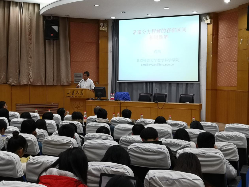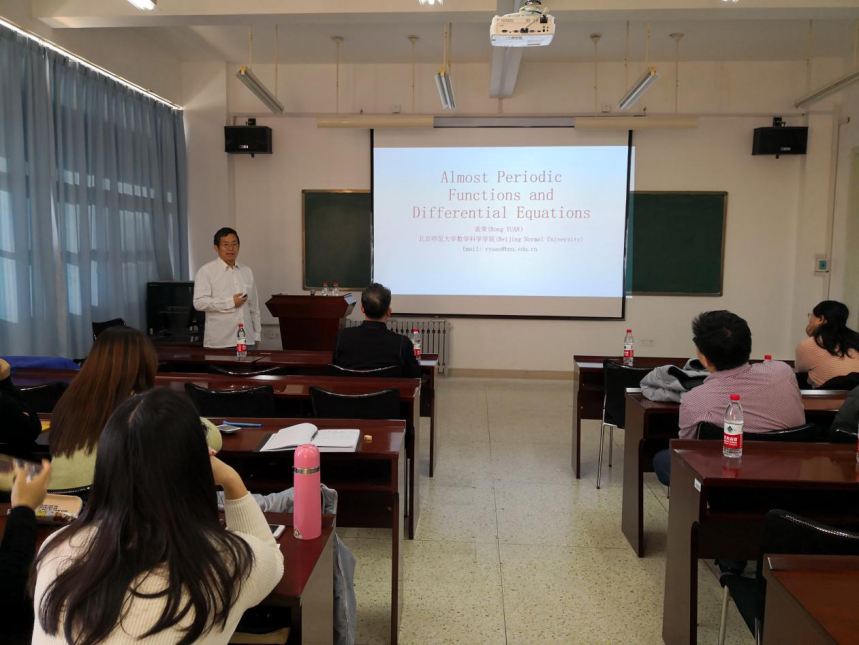 本站讯2019年12月6日下午3点和晚上7点30分,北京师范大学数学科学学院袁荣教授应邀为我院研究生和本科生分别作了题为“几乎周期函数和微分方程”和“常微分方程的存在区间和周期解”的学术报告。