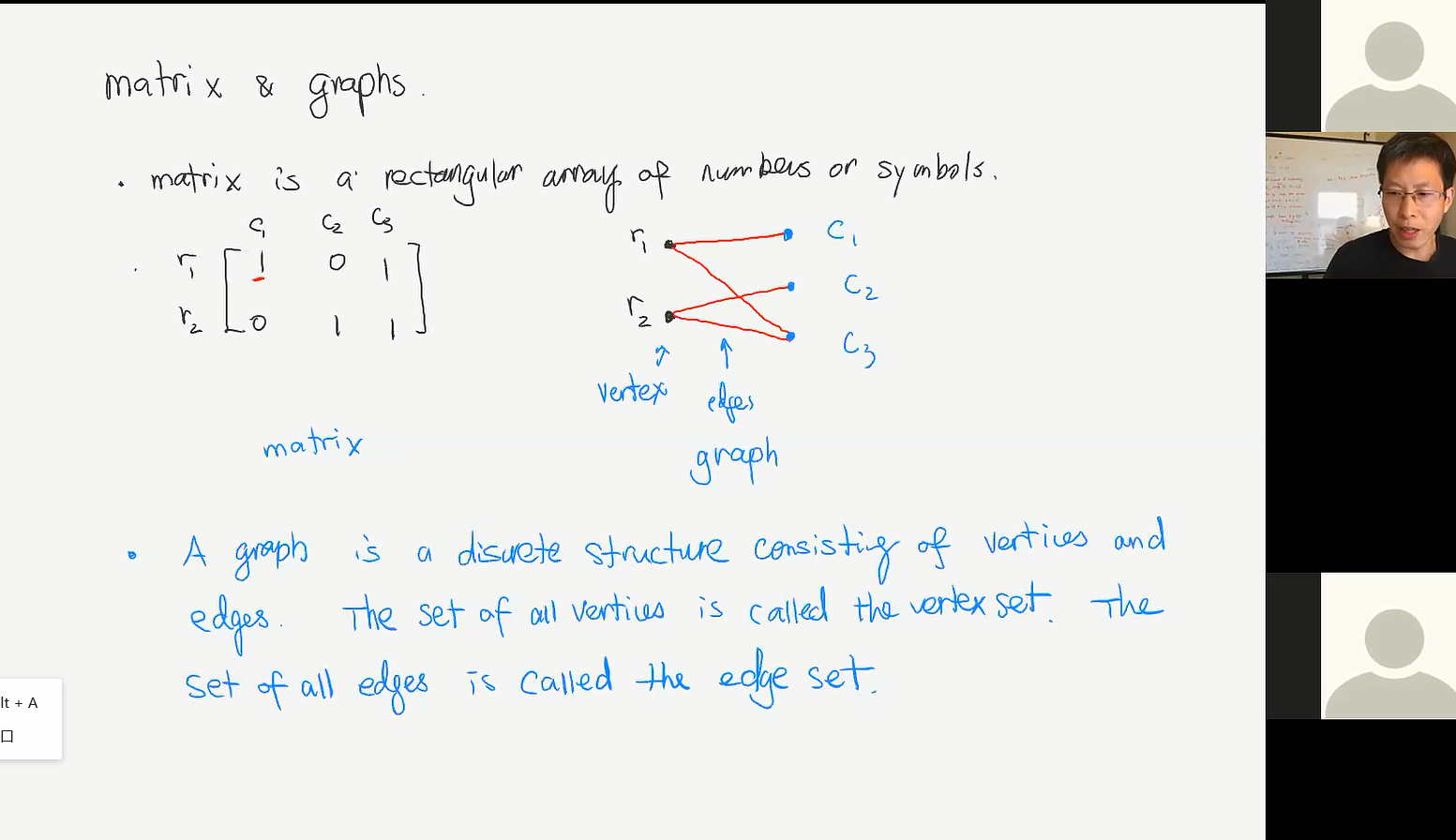 课程于7月6日晚上19时准时开始,世俱杯买球官网网站亓兴勤教授作为课程负责人首先对参加课程的同学和学者表示欢迎,然后介绍了叶东副教授的基本情况及在科研领域的贡献。世俱杯买球官网网站数学学院副院长王光辉教授对叶东副教授的授课表示欢迎及感谢,并希望学员有所收获、快乐度过一周的学习时间。本课程共16学时。在此期间叶东教授全程英文讲授了离散数学核心内容及前沿课题,从图谱理论到正则定理,再到他们的具体应用。叶东教授语言流利、发音标准,讲课思路清晰、深入浅出、十分透彻。通过学习离散数学课程,同学们均表示受益匪浅,不仅掌握了离散数学的核心内容,更激发了对图理论及其应用的兴趣,在心中种下了科研的种子,还开阔了视野,提高了英语能力,体验到了学者的风采和数学的真谛。