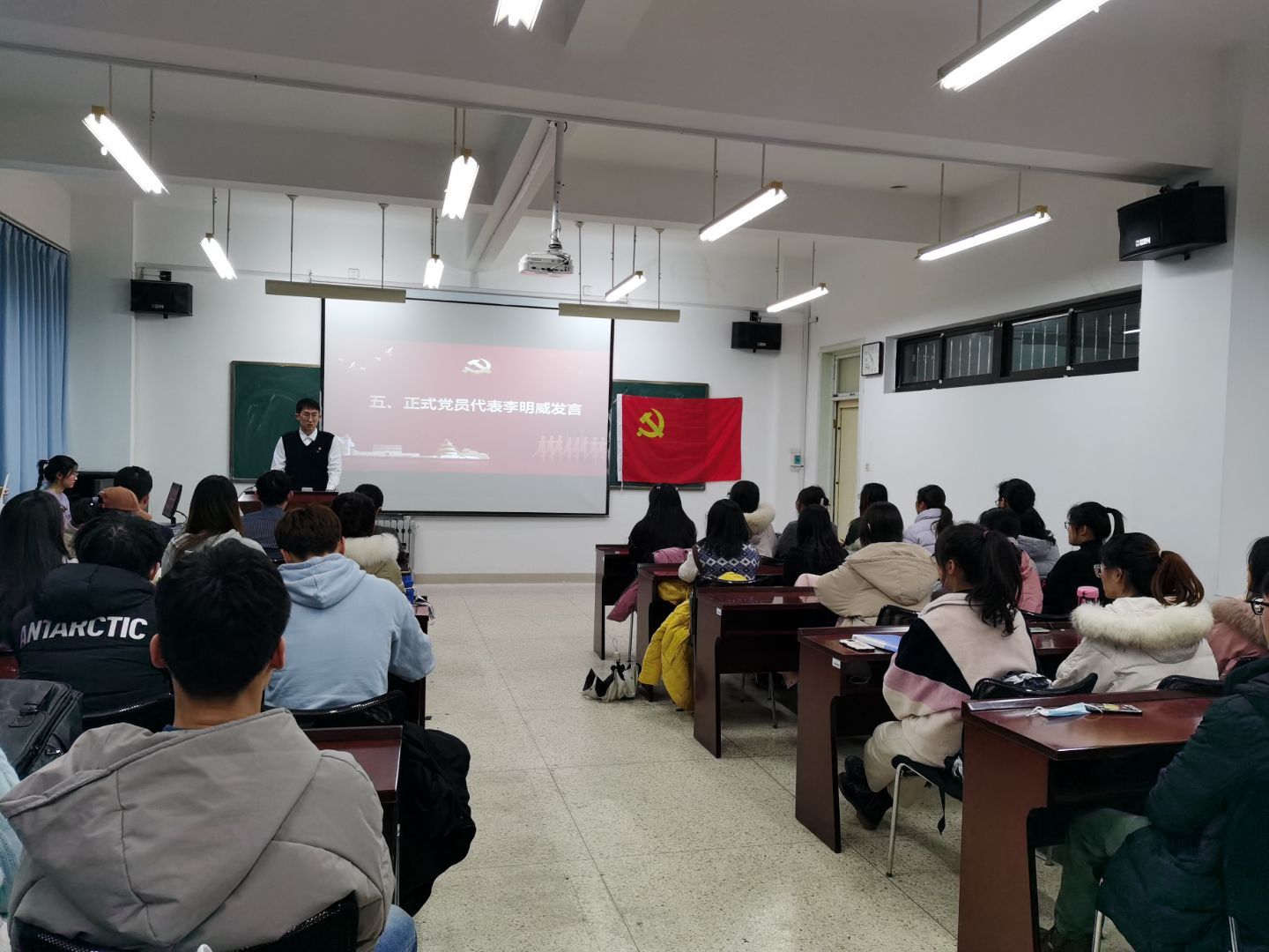 大会在雄壮的《国际歌》中开始,学院党委副书记王鹏飞宣读参加宣誓的新党员名单。在学生党员李明威的带领下,新发展预备党员面向党旗,紧握右拳,庄严宣誓。宣誓后,2019级统计学专业舒逸林代表新发展的预备党员发言,感谢党组织的关心、培养和教育,表示将用实际行动践行誓言,与时俱进,开拓创新,始终牢记初心使命,为真正做到“多谋民生之利,多解民生之忧”不懈奋斗。2018级信息与计算科学专业李明威作为正式党员代表发言,勉励新发展的党员同志努力学习、勇于创新、实现突破,争做“有志气、有骨气、有底气”的新时代青年,将青春力量融入国家发展和民族复兴中。