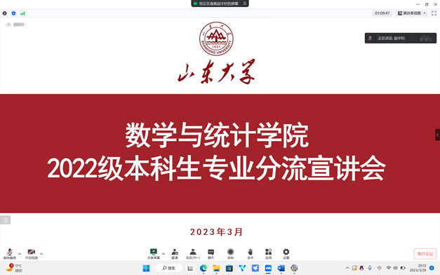 本站讯 3月29日,世俱杯买球官网网站召开2022级本科生专业分流宣讲会。学院党委副书记王鹏飞、副院长亓兴勤、统计系主任卜育德、数学与应用数学系主任陈明涛、信息与计算科学系主任卢红出席会议,辅导员赵宇轩主持,2022级数学类专业全体本科生参加。
