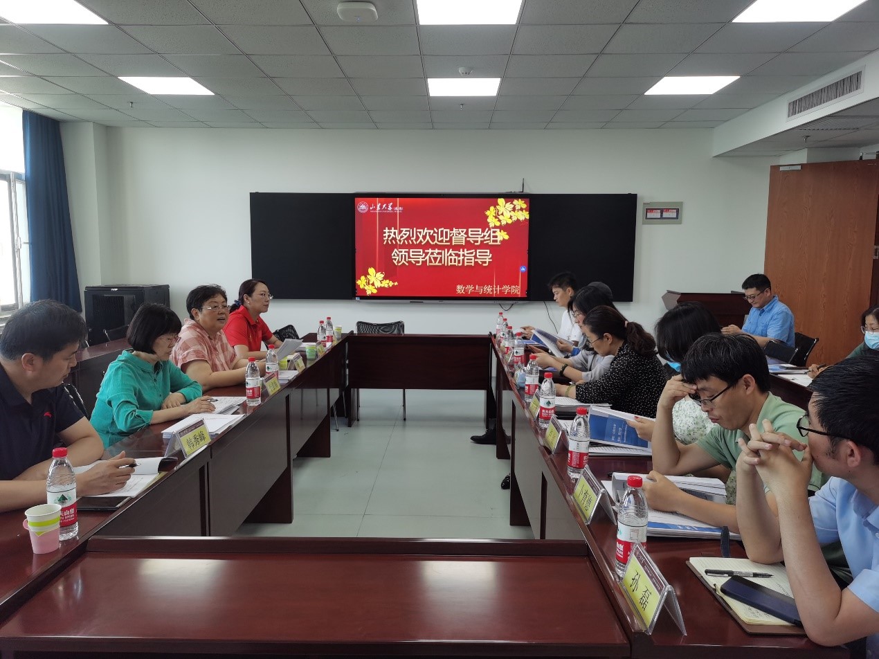 本站讯 6月12日和14日下午,校区本科教育教学评估专家组理工科1组贺红组长、李素梅副教授、郑志磊副教授、王丽副教授、秘书韩秀峰老师莅临世俱杯买球官网网站开展本科教育教学评估督导检查工作。本次会议由副院长亓兴勤主持,学院党委副书记王鹏飞,系主任卜育德、陈明涛、卢红,学院数学建模竞赛及数学竞赛负责人曹祝楼、王育松,教师代表穆曾超、王金涛、李敏,团委书记孙磊、教务员刘扬、白雪、孙爱军等人参加此次会议。