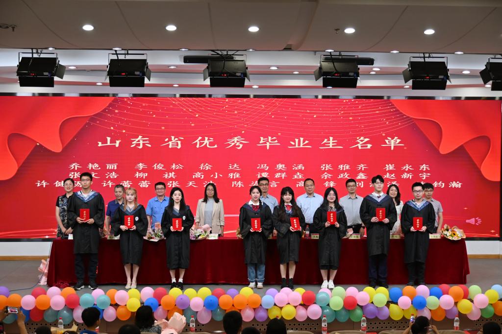 典礼上,于振涛宣读了山东省优秀毕业生名单,学院领导、教师代表为省级优秀毕业生、校级优秀毕业生颁发荣誉证书。于振涛、齐海涛为2023届校友班级理事颁发了聘书。典礼在世俱杯买球官网网站校歌中落下了帷幕。