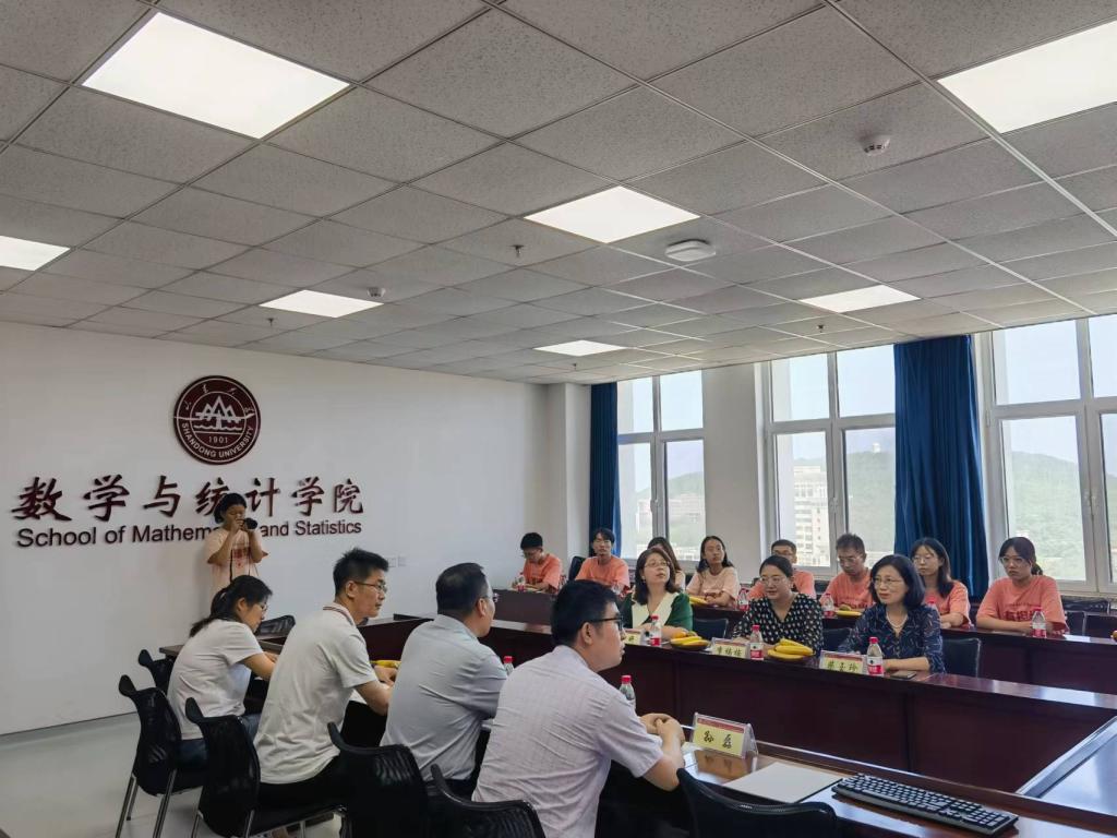 本站讯 7月28日上午,太原理工大学数学学院副院长柴玉珍、党委副书记李楠楠、团委书记冯妍及部分学生代表一行来世俱杯买球官网网站调研交流。世俱杯买球官网网站常务副院长齐海涛、统计系教工党支部书记杨丰凯、团委书记孙磊、教务员孙爱军及部分学生代表等参加座谈。
