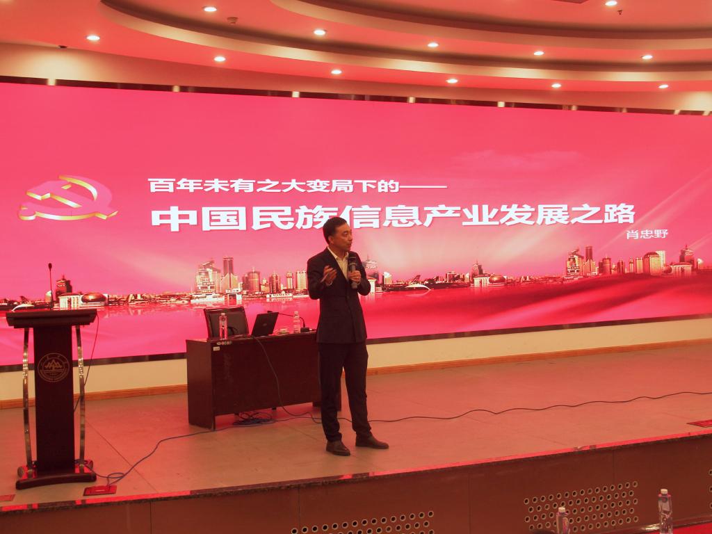 本站讯 为进一步铸牢中华民族共同体意识,强化价值引领,提升师生对新一代信息技术产业发展的认知,10月26日下午,世俱杯买球官网网站于玲珑学堂举行第二期“名企名家进校园”活动,曙光研究院执行校长肖忠野应邀做“百年未有之大变局下的中国民族信息产业发展之路”专题讲座。活动由学院党委副书记王鹏飞主持,学院全体教职工、2023级本科生现场聆听了讲座。