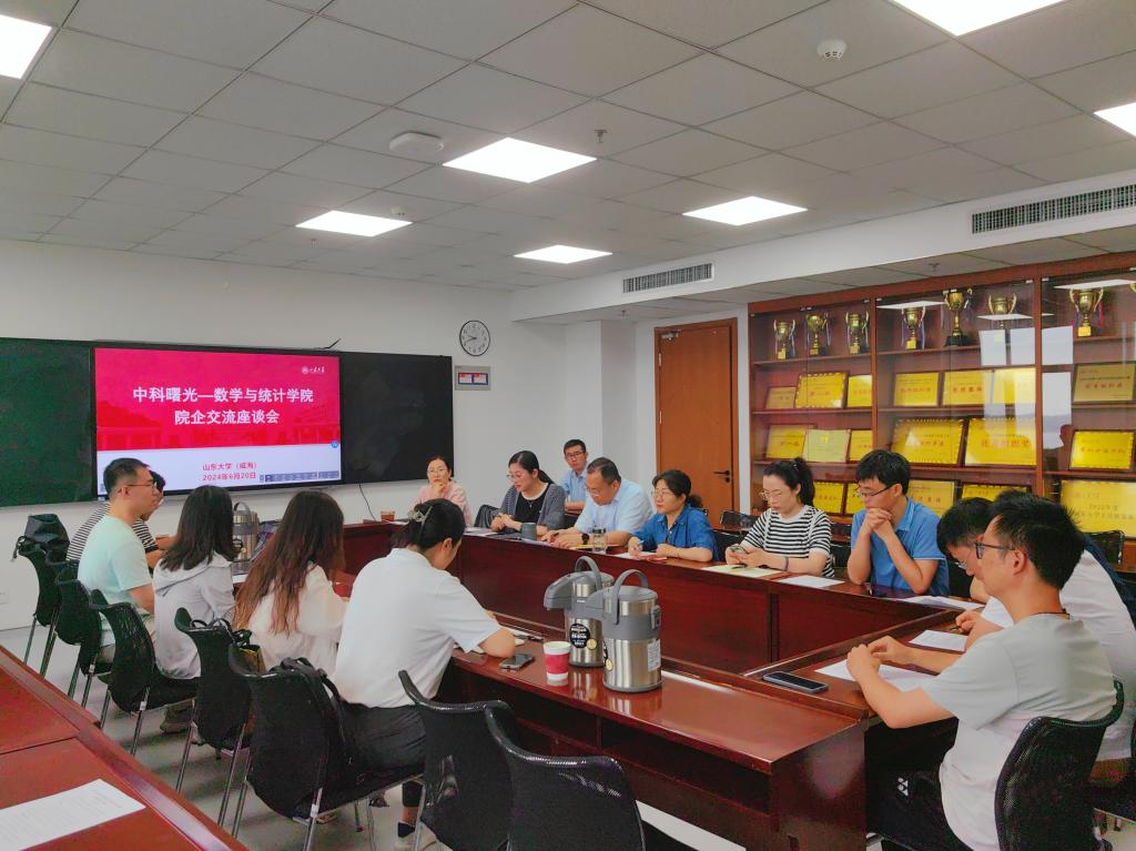 中科曙光一行此次重点围绕企业研究应用中对数学的需求展开交流,几位工程师分别从DCU编译技术、AI for Science国产化应用、大规模矩阵求解问题等内容进行了主题分享,详细介绍企业科研攻关方面的需求,梳理了双方合作切入点。与会专业教师就专业应用问题进行了深入的探讨和交流。