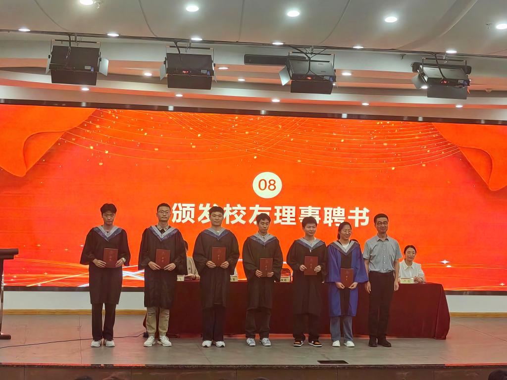 典礼上,进行了优秀毕业生表彰。于振涛宣读了山东省优秀毕业生名单,学院领导、教师代表为省级优秀毕业生颁发了荣誉证书。典礼进行了学院校友理事聘任,于振涛为校友理事颁发聘书。