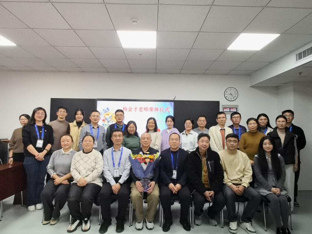 荣休仪式上,学院领导、各单位教师代表向杨金才老师送上鲜花和纪念册,并合影留念。