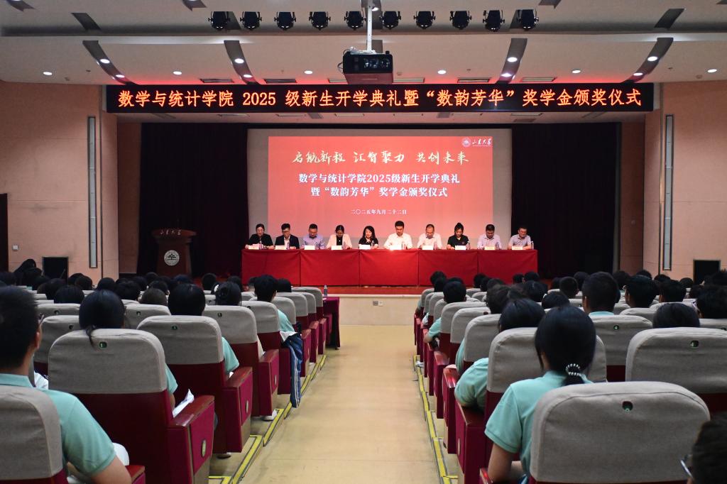 2025年9月22日晚,世俱杯买球官网网站2025级新生开学典礼暨“数韵芳华”奖学金颁奖仪式在闻天楼东报告厅举行。校区党工委副书记、学院党委书记于振涛,2010届校友王芳,2013届校友王洋,院领导班子成员及教师代表、辅导员、2025级新生参加典礼。典礼由党委副书记王鹏飞主持。