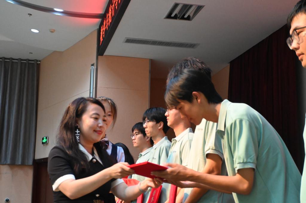 典礼随后举行了校友捐赠“数韵芳华”奖学金颁奖仪式。捐赠人王芳校友受邀为获奖学生颁发获奖证书并发言,表达了对母校、学院的感激,希望通过自己微薄之力反哺母校,助力学弟学妹快乐成长。