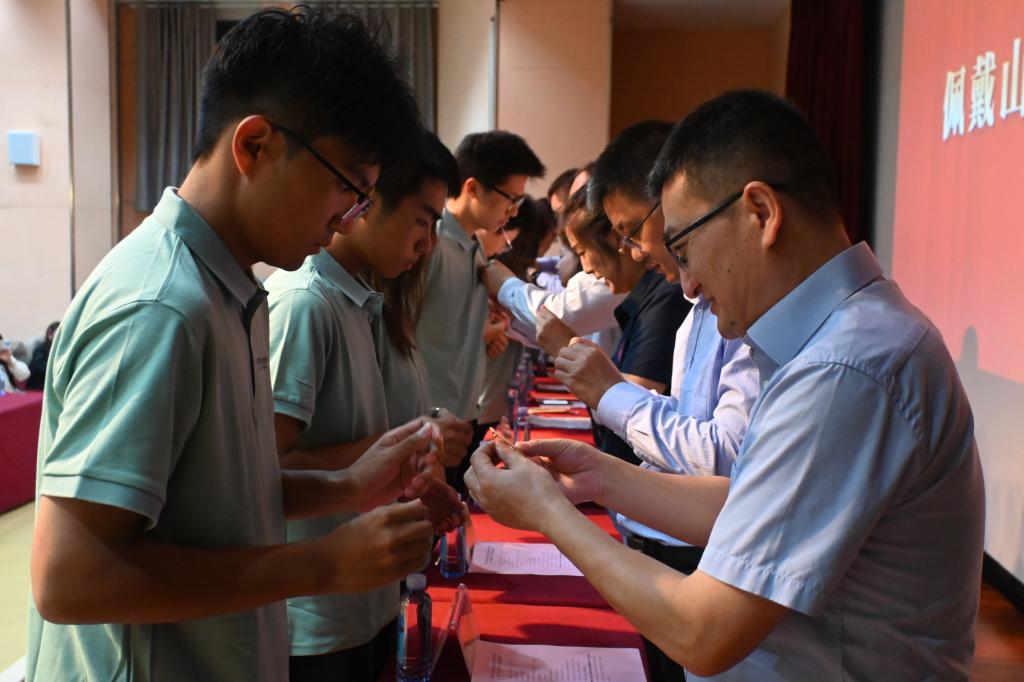 学院领导、校友代表为新生代表佩戴校徽。