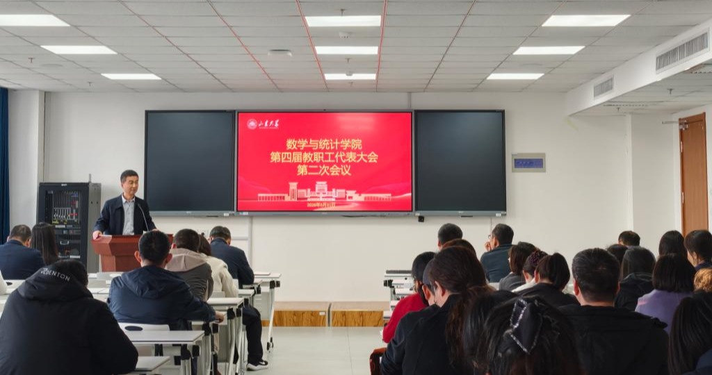 党委书记于振涛在总结讲话中,充分肯定了过去一年学院工会在服务中心大局、凝聚师生力量、营造和谐氛围等方面取得的工作成效与积累的宝贵经验。他指出,当前正值学校“十五五”开局和学院转型发展的关键时期,全院上下要进一步提高政治站位、强化使命担当,做到主动融入、主动作为,切实把思想和行动统一到学院改革发展各项部署上来。他强调,全体代表要认真履行职责、充分发挥桥梁纽带作用,凝心聚力、集思广益,积极为学院学科建设、人才培养等各项事业建言献策;要以此次教代会为新的起点,同心同德、真抓实干,以更加务实的作风推动学院高质量发展,为学校全面图强贡献数统力量。