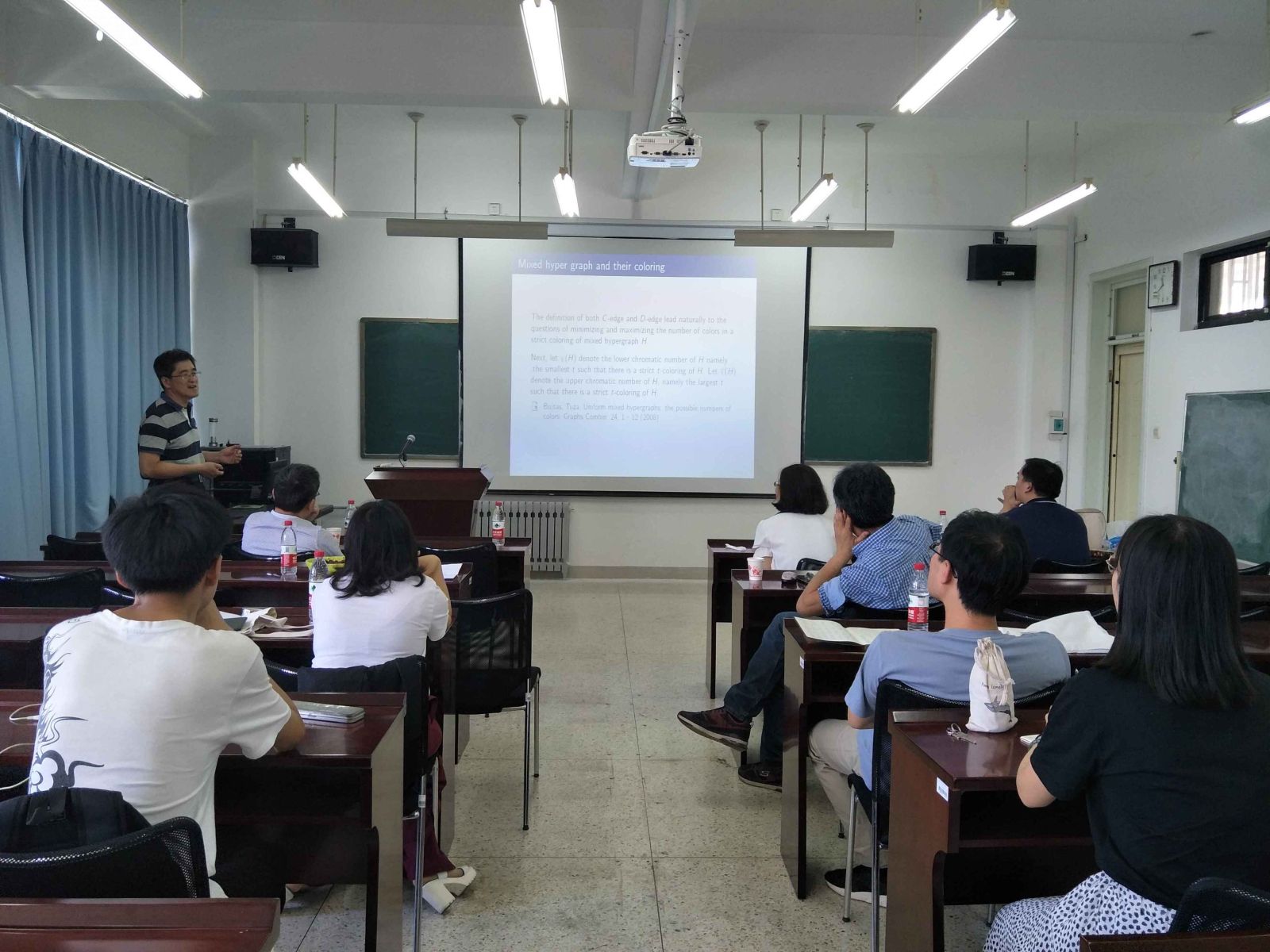 本站讯 6月22日,浙江师范大学王维凡教授和潍坊学院蔡建生教授受邀访问世俱杯买球官网网站(威海)世俱杯买球官网网站,分别开展了题为“Entire Coloring of Plane Graphs” 和 “On the maximum number of hyperedges of C-hypergraph”的学术报告。我院部分教师、研究生和本科生参加了此次报告会。