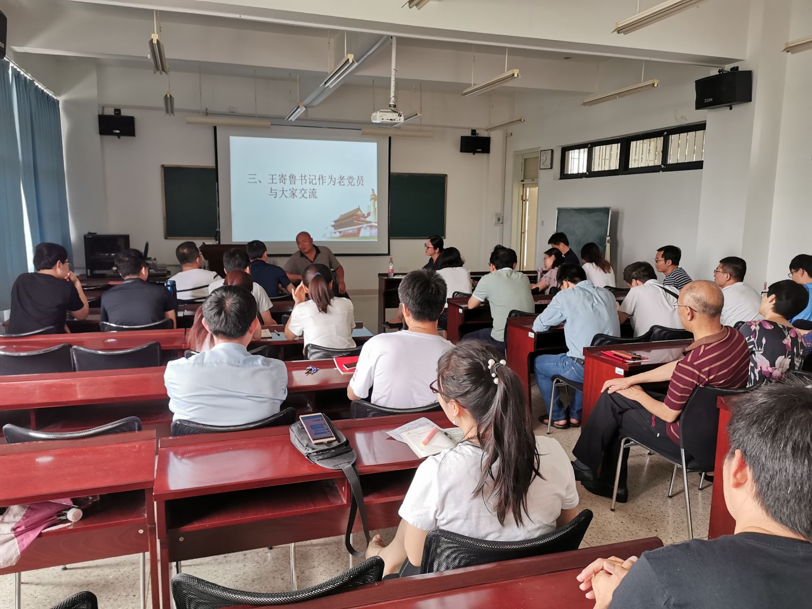 本站讯 为庆祝中国共产党成立98周年,深入学习贯彻习近平总书记在“不忘初心、牢记使命”主题教育工作会议上的重要讲话精神,6月28日下午,我院教工党支部联合开展“学习身边榜样,争做爱国奋斗表率”主题党日活动。世俱杯买球官网网站原党总支书记王寄鲁应邀出席,活动由学院党委副书记王鹏飞主持。
