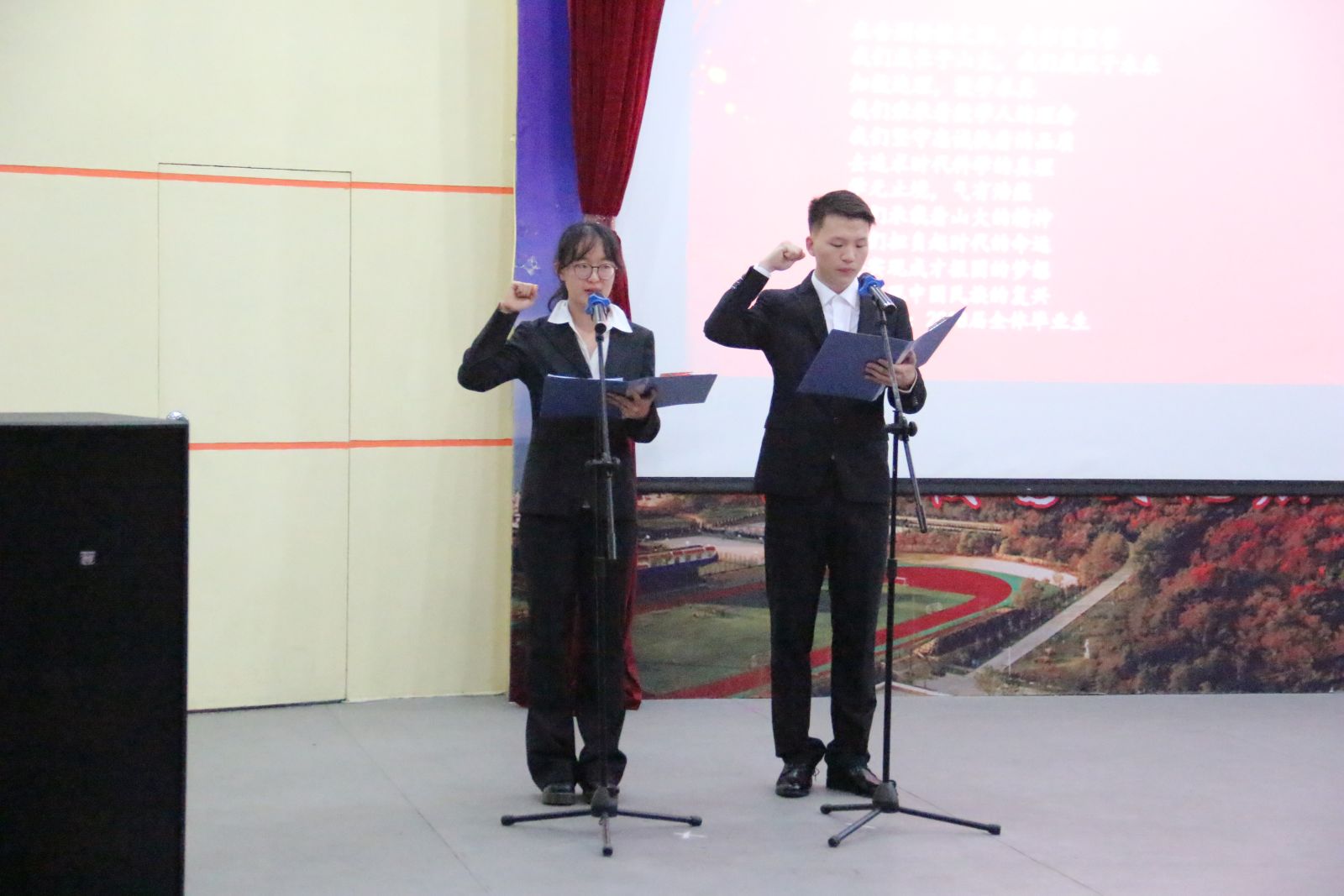 毕业典礼上,綦建刚代表学院对2018届毕业生顺利毕业表示祝贺,肯定毕业生取得优异成绩的同时提出了三点期许:不忘初心,牢记最初的梦想;保持在校期间养成的良好习惯,将数院精神发扬光大;紧跟时代步伐,勇于挑战自我。而后,优秀学生代表葛立发言,他分享了自己对大学四年的总结收获,表达了对母校、学院以及老师同学们的感激之情。随后,学院领导为优秀毕业生颁发证书,毕业生代表为老师们献花,全体毕业生进行了庄严地宣誓。