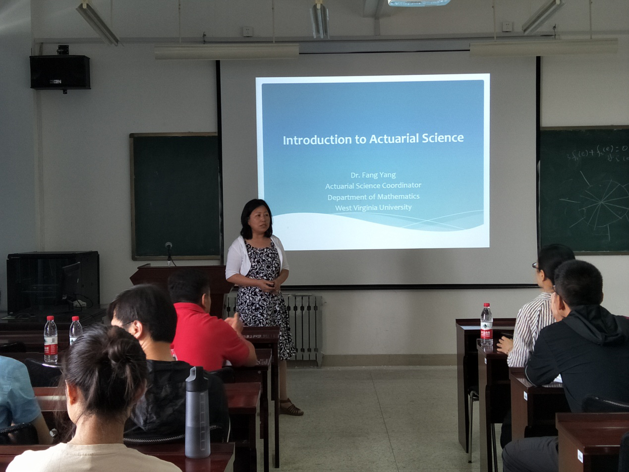 本站讯 2018年6月15日,美国西弗吉尼亚大学(West Virginia University, USA)数学系副教授杨芳应邀访问我院,开展了题为“Introduction to Actuarial Science”的学术报告,学院部分师生聆听了报告。