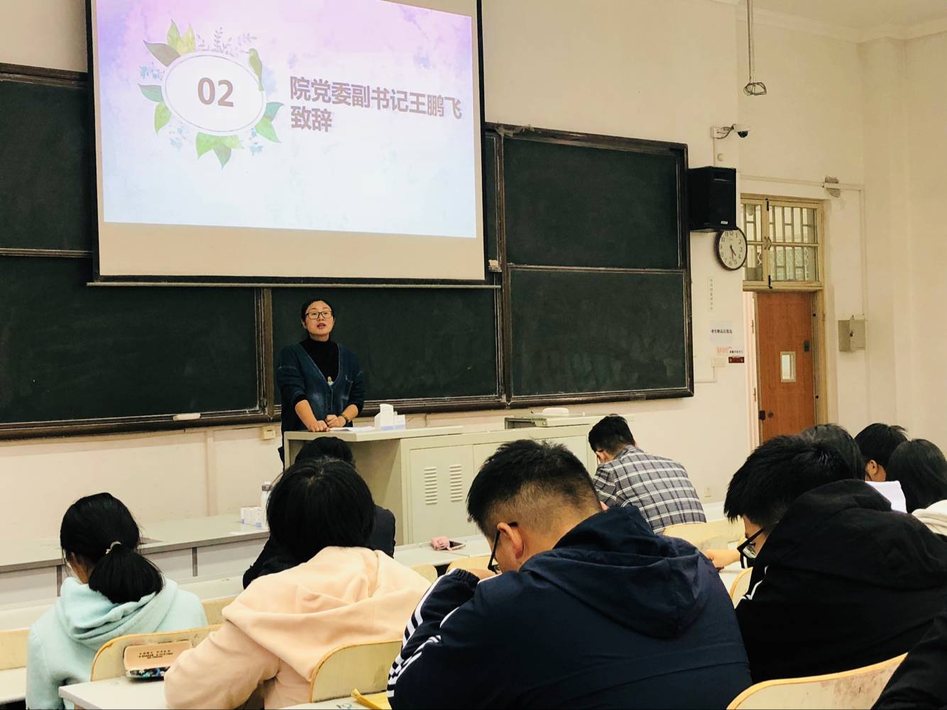 本站讯 11月1日下午,我院“积分筑梦”活动启动仪式在图东教学楼208举行。学院党委副书记王鹏飞,辅导员王紫山、赵德豪出席仪式,全体授课学员参加了此次会议。