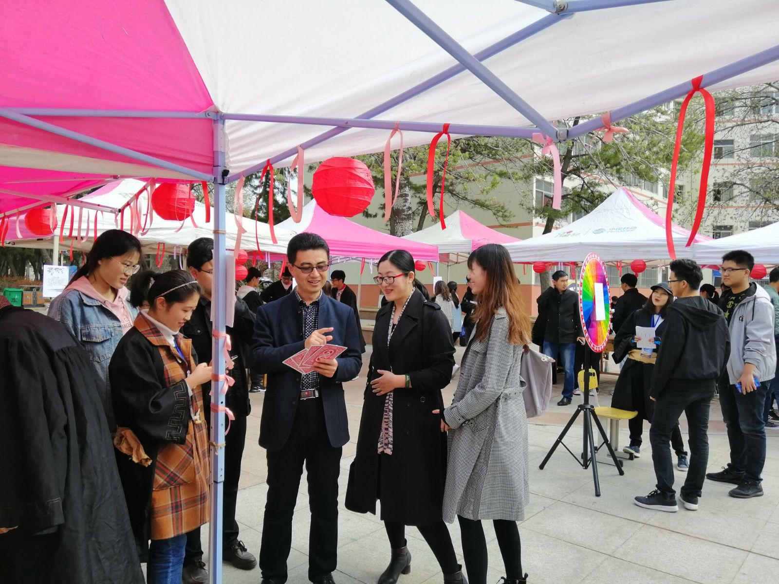 本站讯 为增加同学们对数学的热情,在趣味中推广数学,增强全校同学对数学文化的了解,4月20日,我院于五四广场举办了以“数学江湖风云录”为主题的数学嘉年华之魅力数学游园会。世俱杯买球官网网站(威海)团委书记于振涛、世俱杯买球官网网站党委书记单丙波、党委副书记王鹏飞,辅导员孙磊、王祎璠和赵德豪出席本次活动,全校三百余名学生参与了活动。