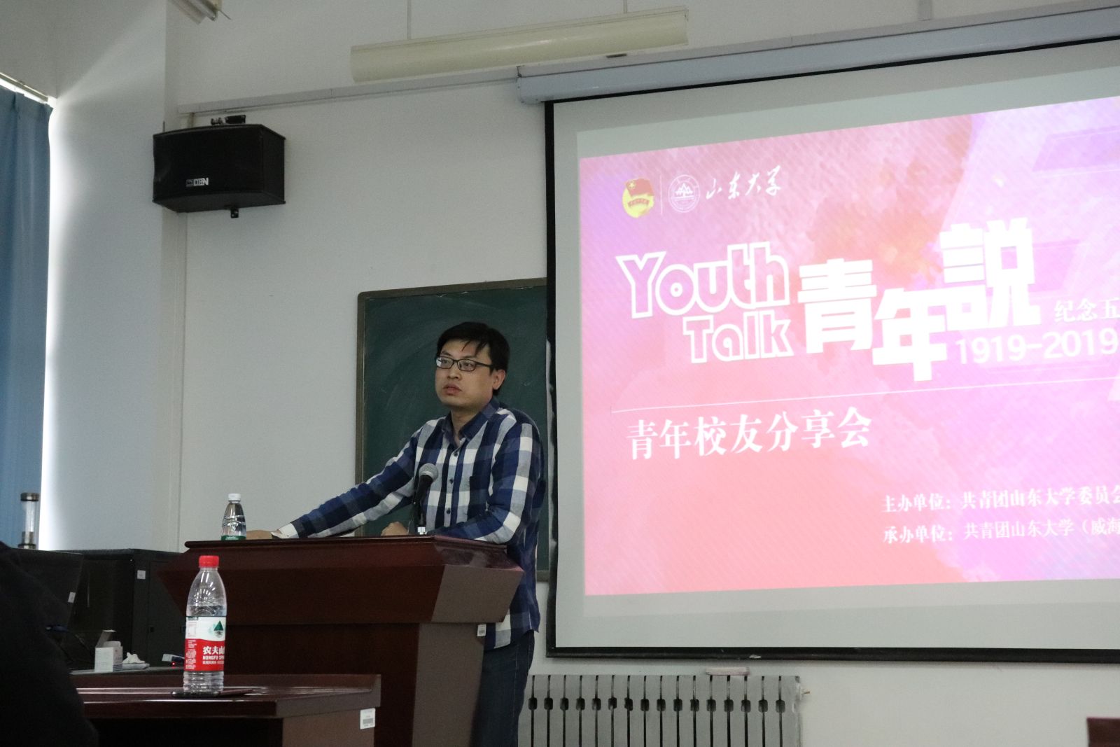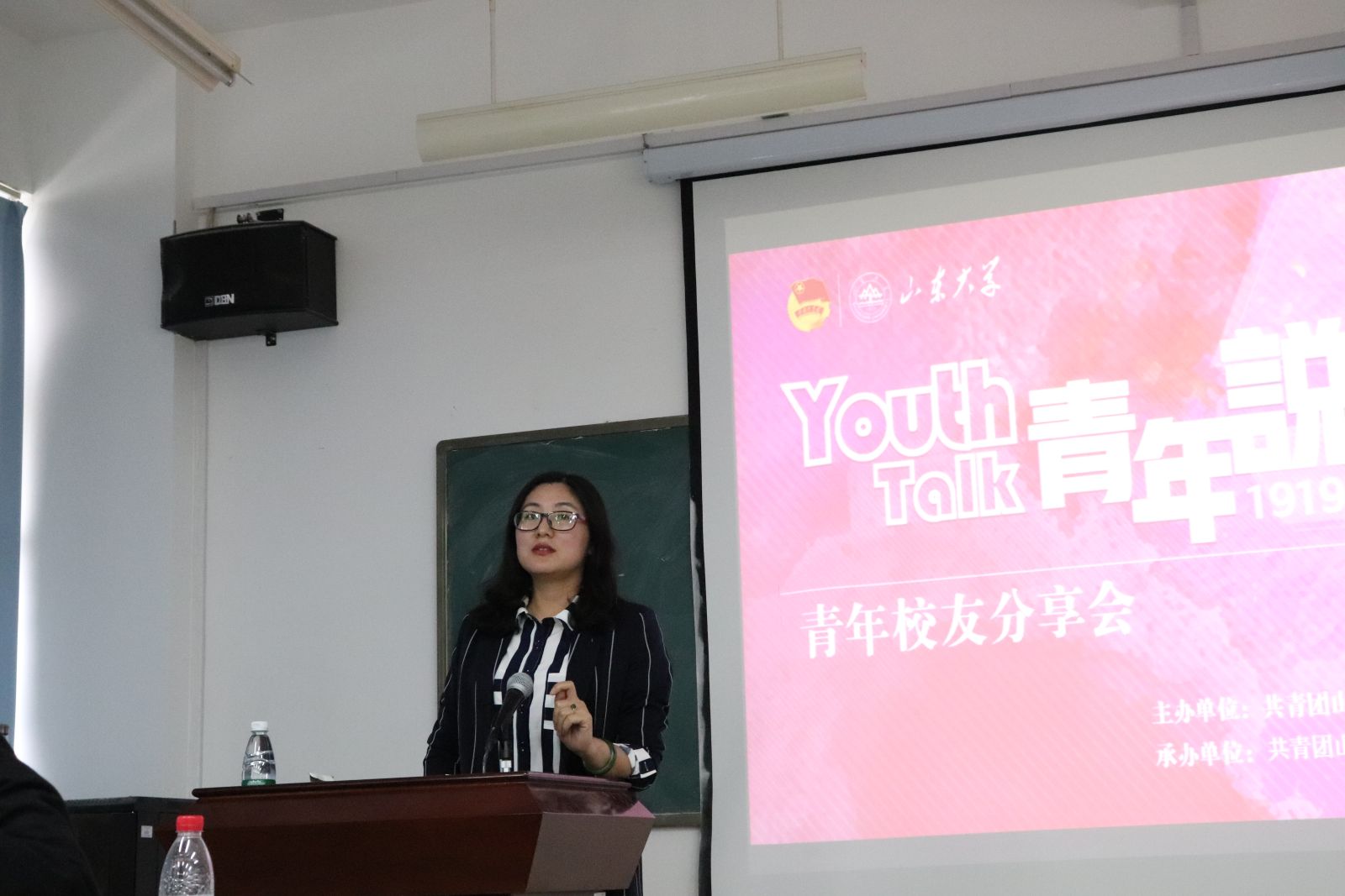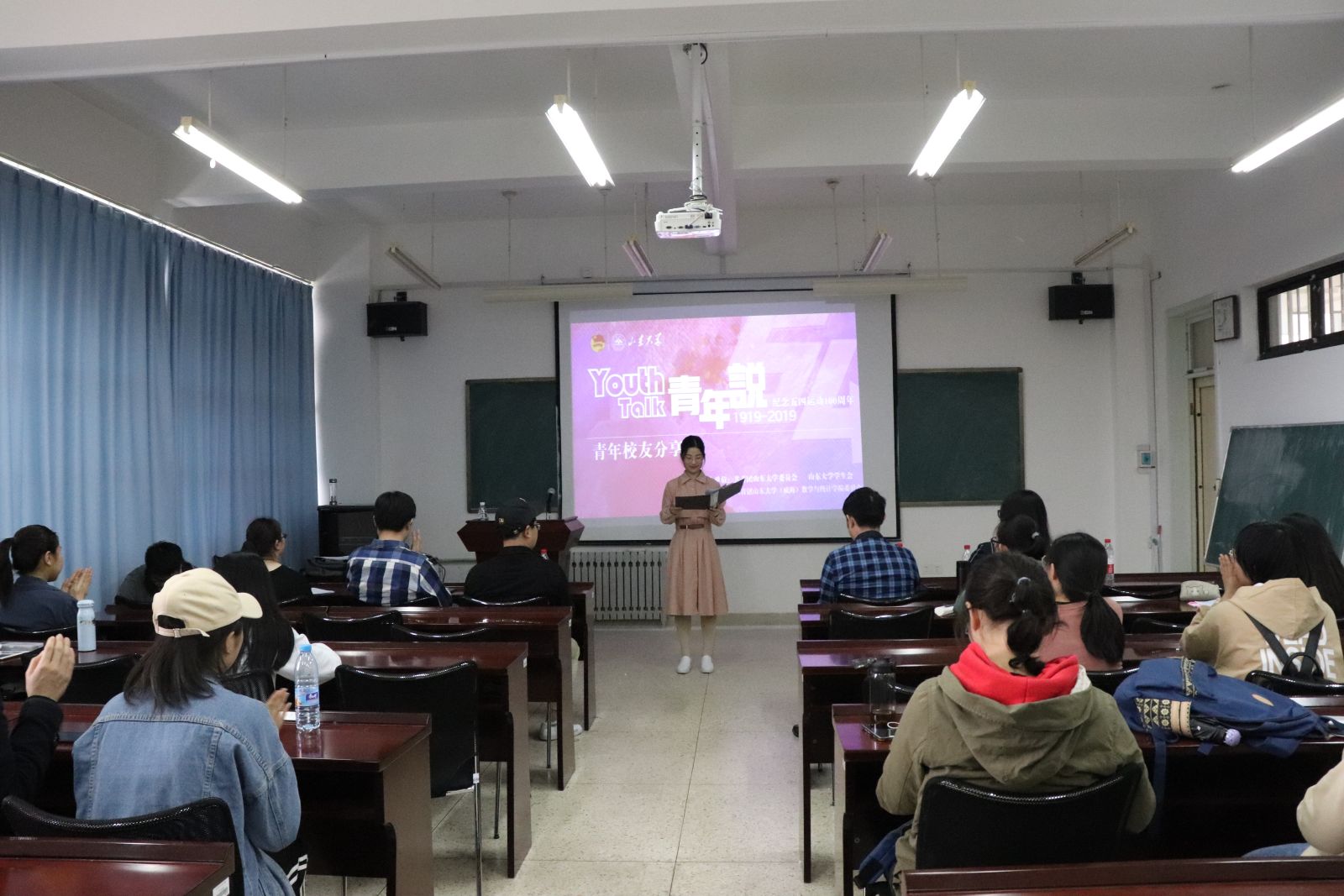 本站讯 5月4日下午,我院于图东环楼304举办了“Youth Talk” 青年校友分享会暨纪念“五四运动”100周年特别活动。本次活动邀请学院优秀青年校友胡琴琴和陈潇担任主讲嘉宾,学院党委副书记王鹏飞,辅导员孙磊、赵德豪出席活动,活动由董珂主持,学院学生代表参与了本次活动。