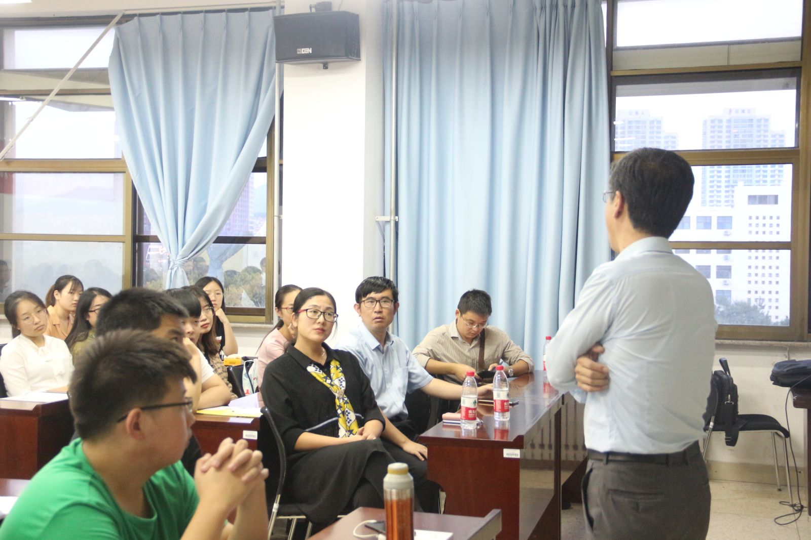 座谈会上,马洪涛首先向大家介绍了自己的经历,他表示自己工作三十年,深刻理解到基础数学在工程领域起到至关重要的作用。马洪涛向大家详细介绍了公司的技术领域,包括数字化设备协同控制平台、运动控制技术、仿真开发平台搭建等。马洪涛提出,新时代技术发展要求前沿理论与工程要实际结合,这对人才的数学建模能力提出了新要求。针对5G问题,马洪涛同样提出了自己的看法,同时,他还向大家分享了自己工作时出现的一些问题,并提醒大家要尽量避免这些问题。马洪涛强调,数据库、数据服务,都离不开数学这些基础的东西,歌尔股份有限公司欢迎更多的数学人才加入。最后,马洪涛耐心的向大家解答了大家的疑问,并对之前的内容做出了相应的解释说明。座谈会在一片掌声中落下了帷幕。