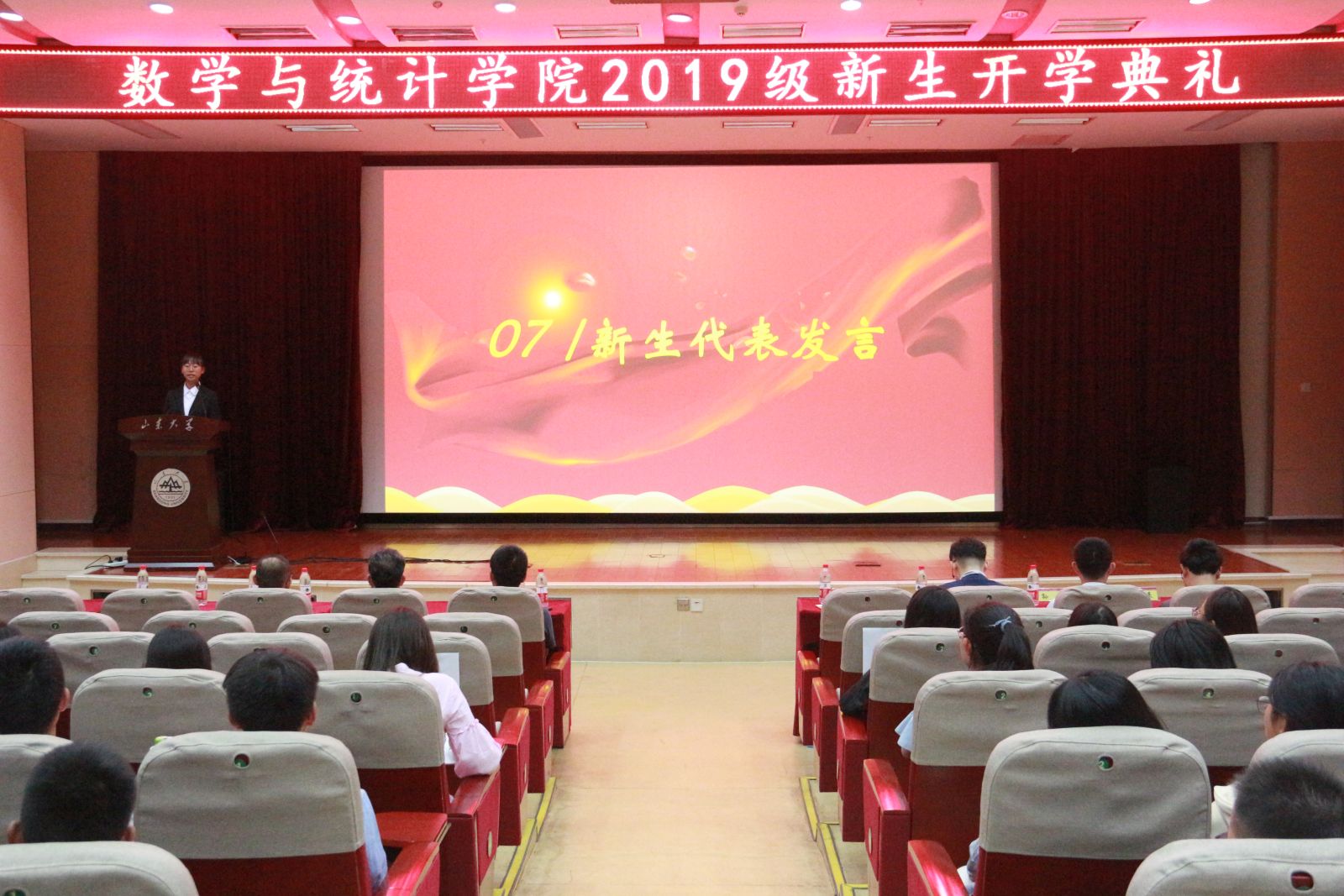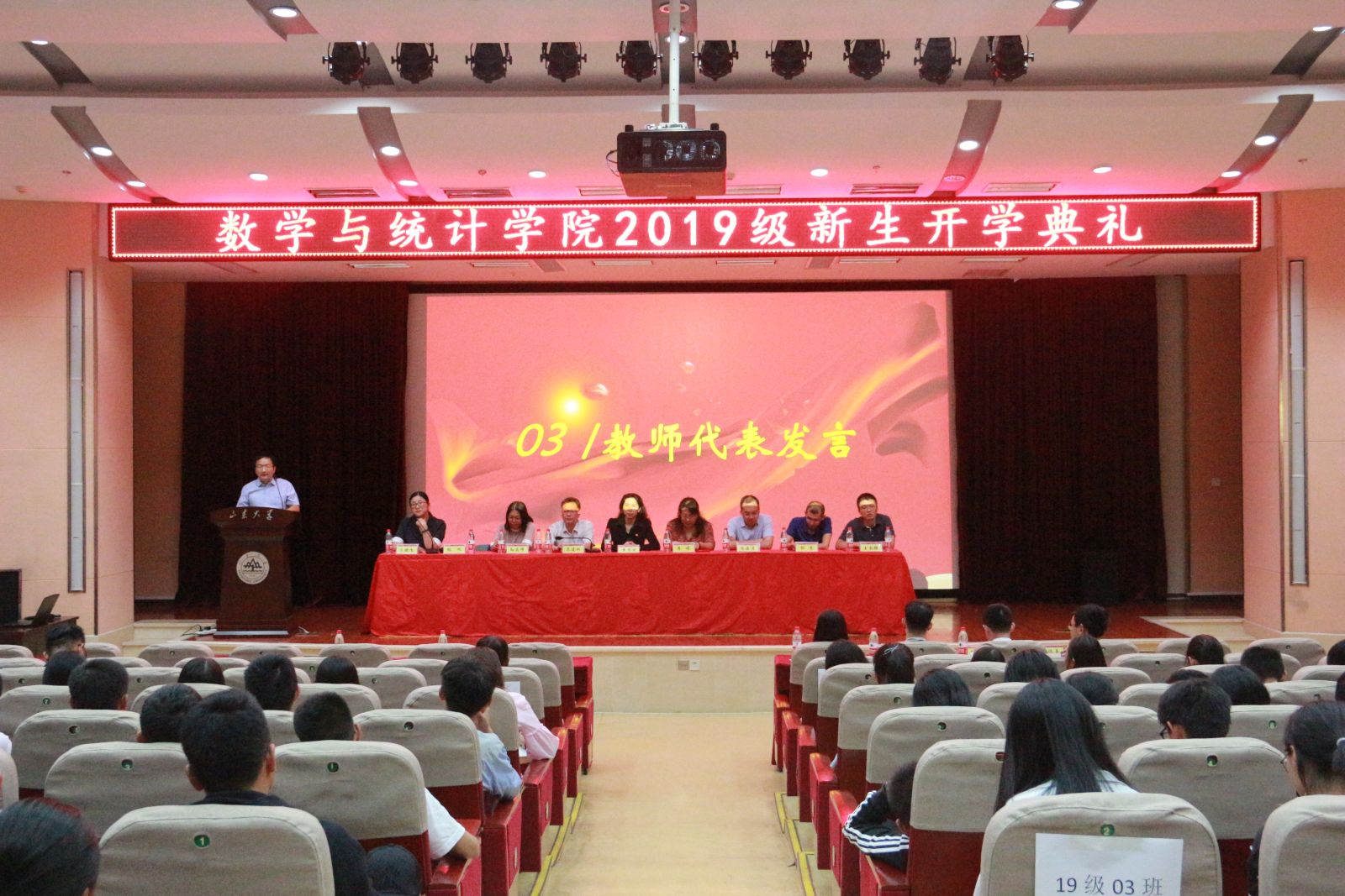 本站讯 9月26日晚,我院于闻天楼东报告厅举办2019级新生开学典礼。学院党政领导、各系主任和辅导员出席典礼,2019级全体新生参加。典礼由学院党委副书记王鹏飞主持。