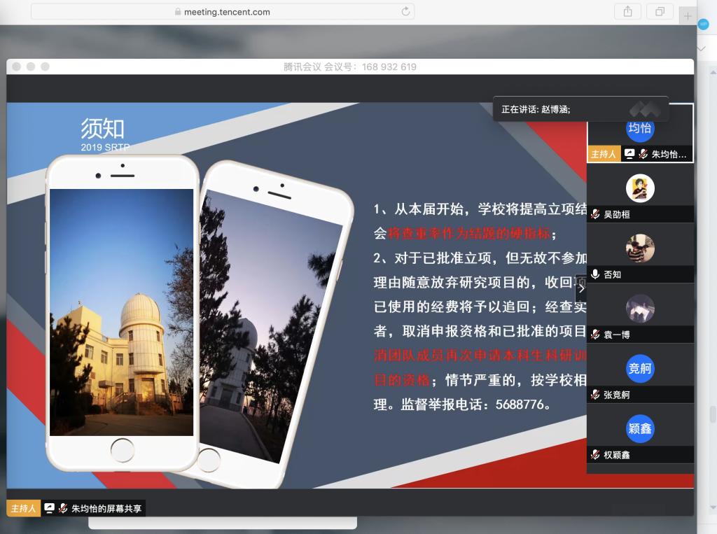 本站讯 世俱杯买球官网网站于4月16日在线上腾讯会议开展第十五届SRTP指导分享会,辅导员孙磊出席了本次交流会,魏佳佳,陈琰钰进行了经验分享,我院学生会科技学术部成员,18级,19级部分同学参加了本次会议。会议由赵大成主持。