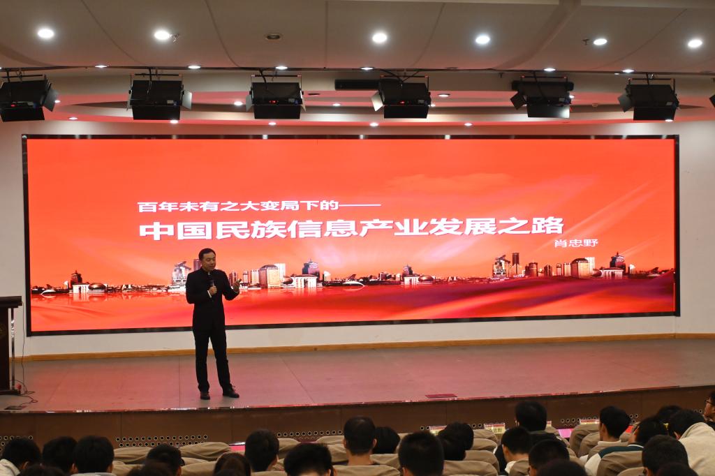 在讲座中,肖忠野从广义的国际大背景为切入点,结合自身深耕行业的实践经验,深度解析数字经济时代下的行业变革趋势与技术迭代逻辑,并围绕信创产业的政策导向、技术壁垒与市场机遇展开科普,让新生直观感受专业与产业的紧密联结。在生涯规划分享环节,他聚焦数学学科特性为新生解锁大学成长攻略,既涵盖科技领域技术演进与产业布局,又针对数学专业学生的学习重点、能力培养方向给出具体指引,兼具专业性与实用性,为新生构建起对行业发展规律与个人成长路径的清晰认知框架。