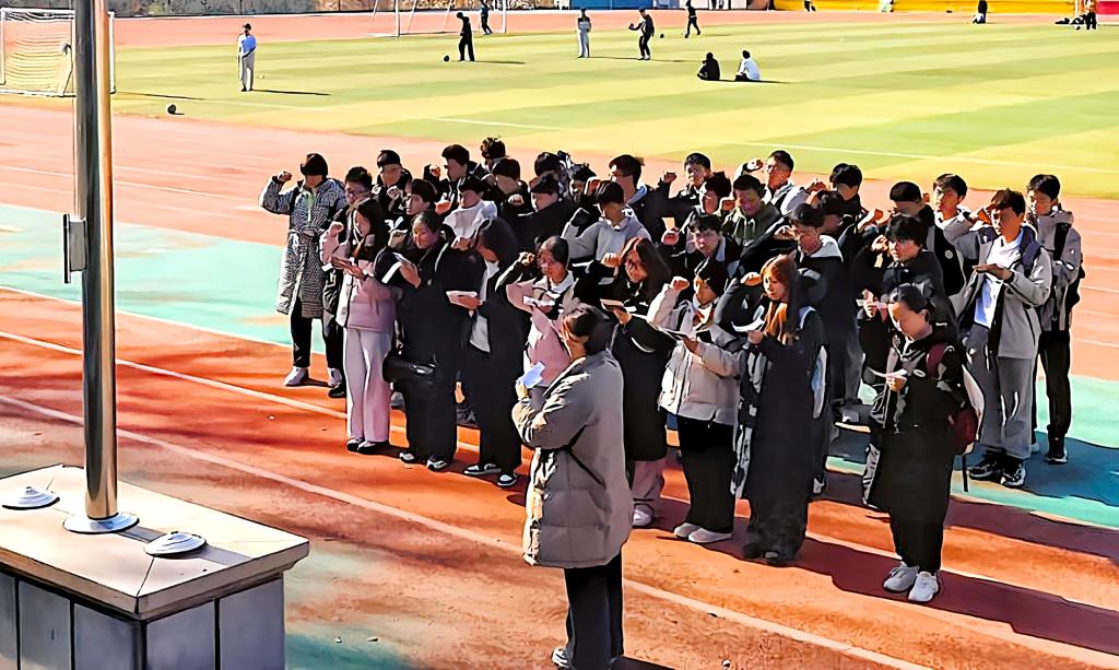 在室外实践环节,学生们依次走过校训石前、五四广场、篮排球场及田径场国旗下4个打卡点,在每个打卡点集章并进行抗战主题的实践互动,用实际行动体会抗战精神。在篮排球场,进行了“征程再现”“手榴弹投掷”互动,让大家在实践中铭记抗战历史,不忘时代使命;在田径场国旗下,同学们庄严宣誓:缅怀先烈、铭记历史、砥砺前行、不负韶华,并在横幅上签字,表明当代山大青年的奋斗决心。