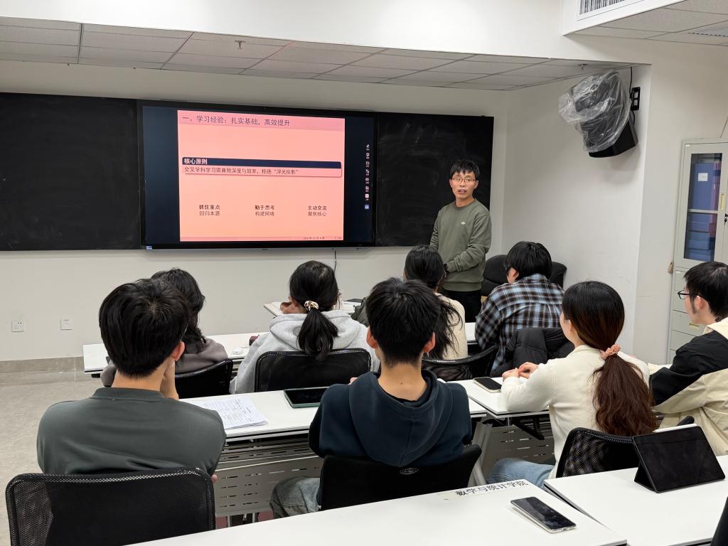 围绕研究生科研成长的核心路径,卜育德从三个维度展开。一是 “扎实基础,高效提升”,筑牢数学专业根基,善用学习工具提质增效;二是“勤于思考,构建知识网络”,在科研中主动串联多学科知识,锤炼系统性思维;三是“明确目标,持续迭代”,在科研实践中不断优化方法、精进思路。