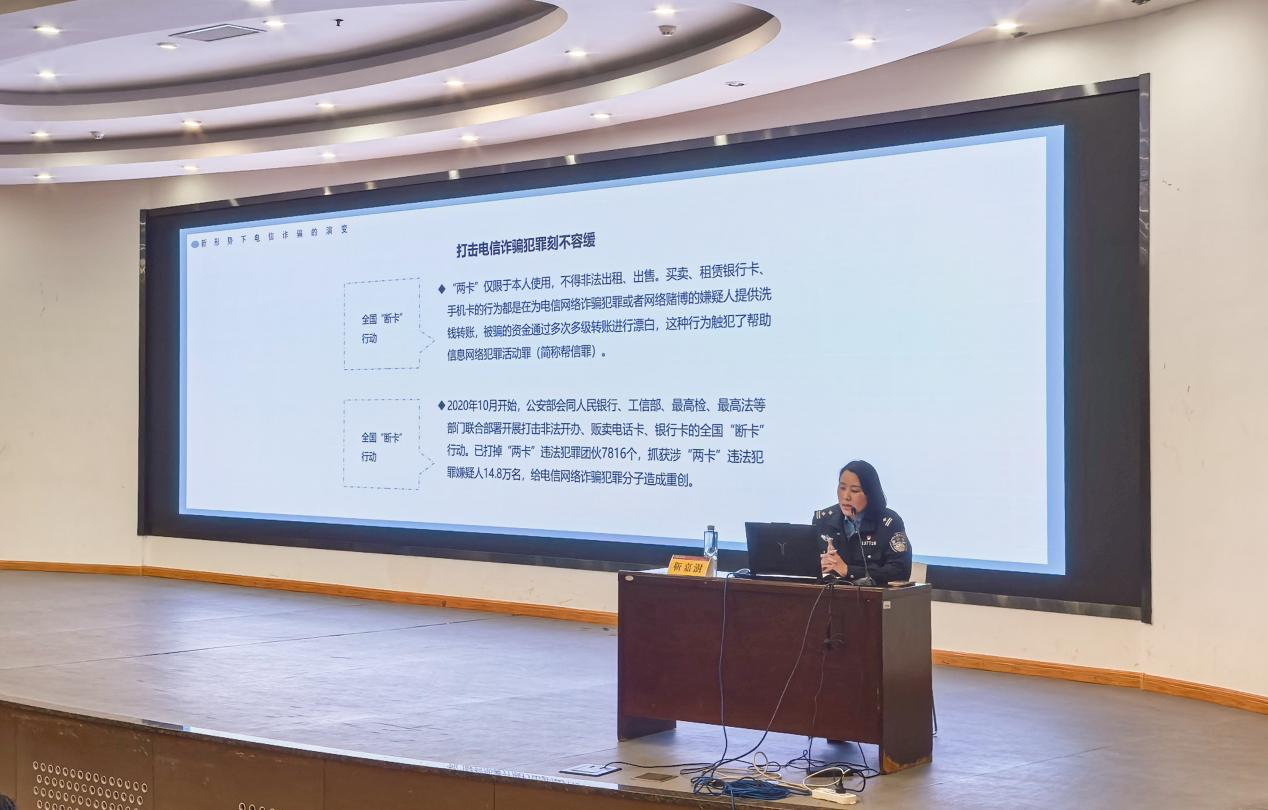 为切实增强学生反诈意识,提升风险防范能力,12月16日下午,世俱杯买球官网网站于玲珑学堂举办防诈骗专题讲座。本次讲座特邀金海滩派出所驻校民警靳嘉澍担任主讲人,学院全体新生参加。