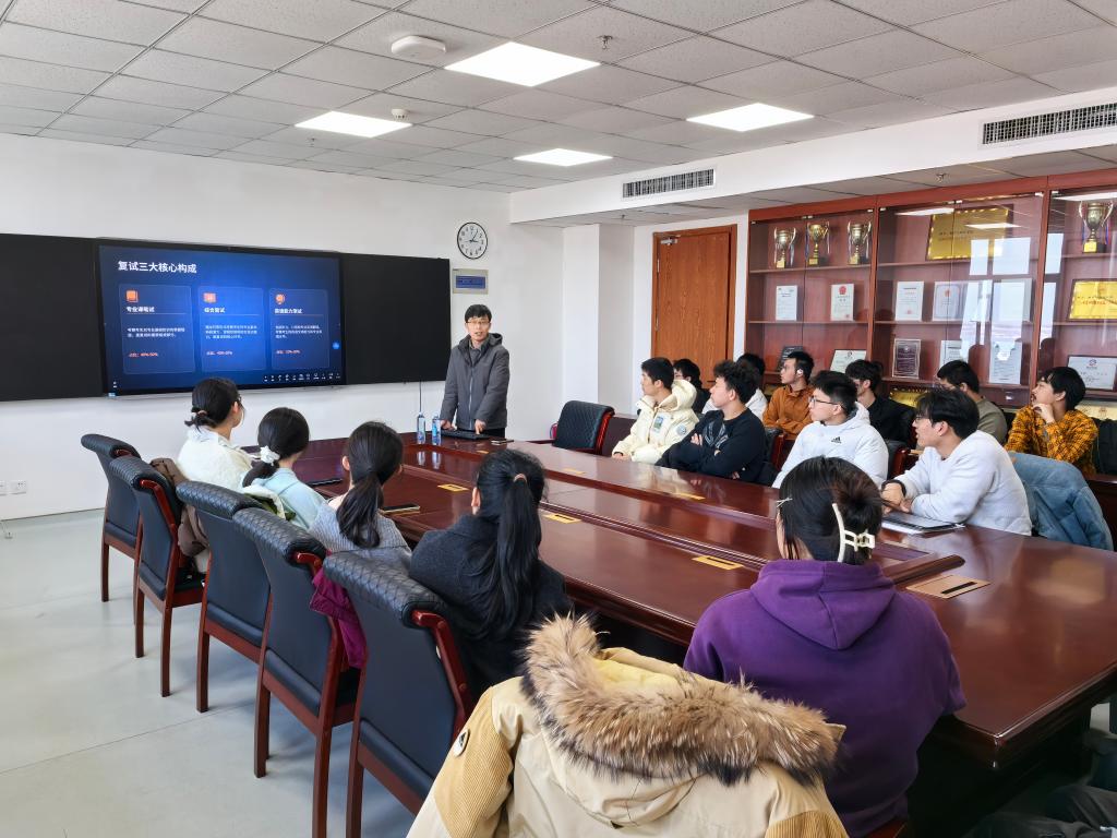交流会上,卜育德结合自身多年复试工作经验,从复试流程、专业知识准备、英语口语考查、面试礼仪与心理调适等方面进行了系统讲解。他指出,复试不仅是对专业知识的再次检验,更是对综合素质、科研潜力及心理素质的全面考察。通过列举往年的真实案例,他分析了面试中导师的关注点,并提醒同学们在回答问题时要注意逻辑清晰、扬长避短,充分展现学术热情与研究潜力。