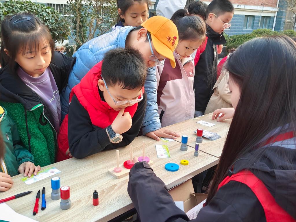 活动现场气氛热烈,设置了多个兼具逻辑性与挑战性的数学关卡。在“数阵突围”与“数塔移智”摊位前,小朋友们在方寸之间展开逻辑博弈,通过拨动数字华容道与移动汉诺塔圆盘,深入探索空间排列与递归思想的奥秘。与此同时,极具策略性的“数算争锋”吸引了不少小小“精算师”,孩子们在21点的抽牌过程中冷静权衡、精准计算,充分锻炼了敏捷的口算能力与风险评估思维。针对逻辑推演的六宫数独挑战与考验空间构思的一笔画环节,参与者们屏息凝神,在白纸黑字间寻找唯一解与贯通路径,成功通关后的欢呼声此起彼伏。