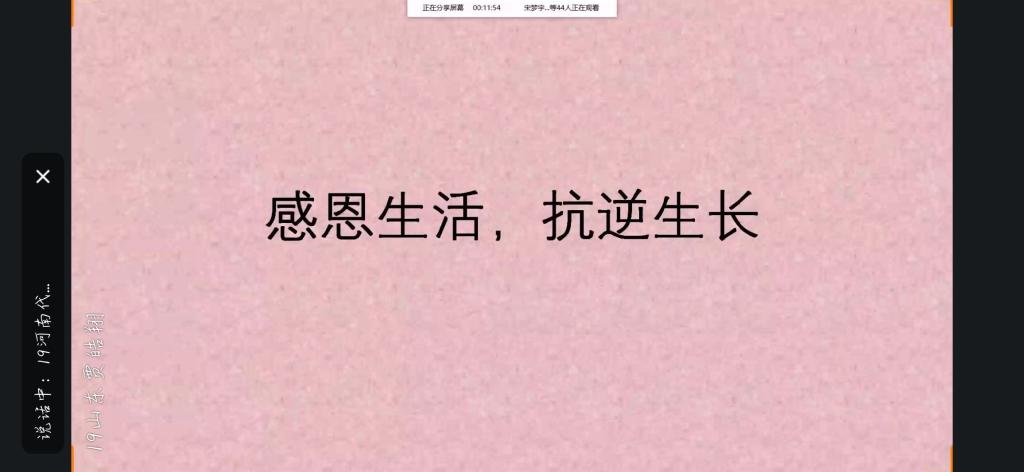 本站讯 2020年4月18日上,2019级数学3班举办“感恩生活 抗逆生活”第二期心理班会,班会由心理委员代佳丽、贾皓翔主持,19级数学3班全体同学参加。