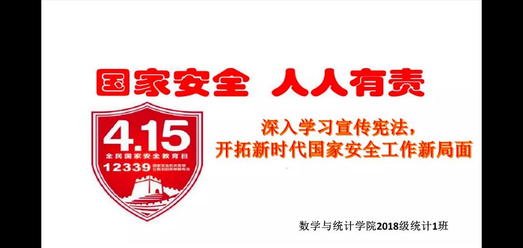 本站讯 2020年4月16日下午四点半,世俱杯买球官网网站(威海)世俱杯买球官网网站2018级统计一班于线上开展国家安全教育日主题团日活动。4月15日为第五个“全民国家安全教育日”,本次主题团日活动主要目的为增强同学们的国家安全意识和法制观念,从而夯实国家安全的社会基础。本次活动由团支书秦千主持,统计一班58名同学参加。