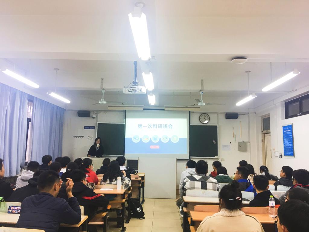 本期科研班会分为“自我介绍”“大学生活”“认识科研”三个板块。活动伊始,班主任冯敬对自己的科研经历做了简短的介绍。在“大学生活”板块,班主任首先带领同学观看了一段有关大学生活中不同选择造就不同生活的视频,接下来让同学们匿名写下自己的短期目标和长期目标,并对目标中出现频率比较高的“保研”“竞赛”等关键词进行了解说。紧接着,班主任冯敬对“全国大学生数学建模竞赛”等适合大一同学现在参加及在今后会遇到的比赛项目进行了详细介绍,并鼓励同学抓住当下的机会,不断尝试创新。最后,在“认识科研”板块,班主任向同学们详细的介绍了科研立项的流程,以及各流程需要注意的事项。活动在班主任的温馨鼓励和对同学们的真心期盼中落下帷幕。