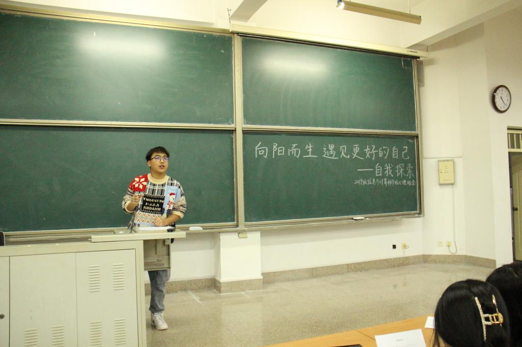 本站讯 2021年11月9日下午16:00-18:00,世俱杯买球官网网站2019级信息与计算科学班于商院447教室举办“向阳而生,遇见更好的自己”自我探索主题心理班会。本次班会由2019级信息与计算科学班心理委员郭慧玲、徐振东主持,班级同学积极参加。